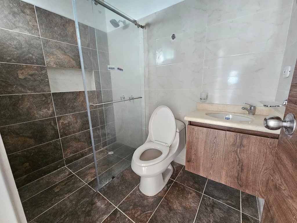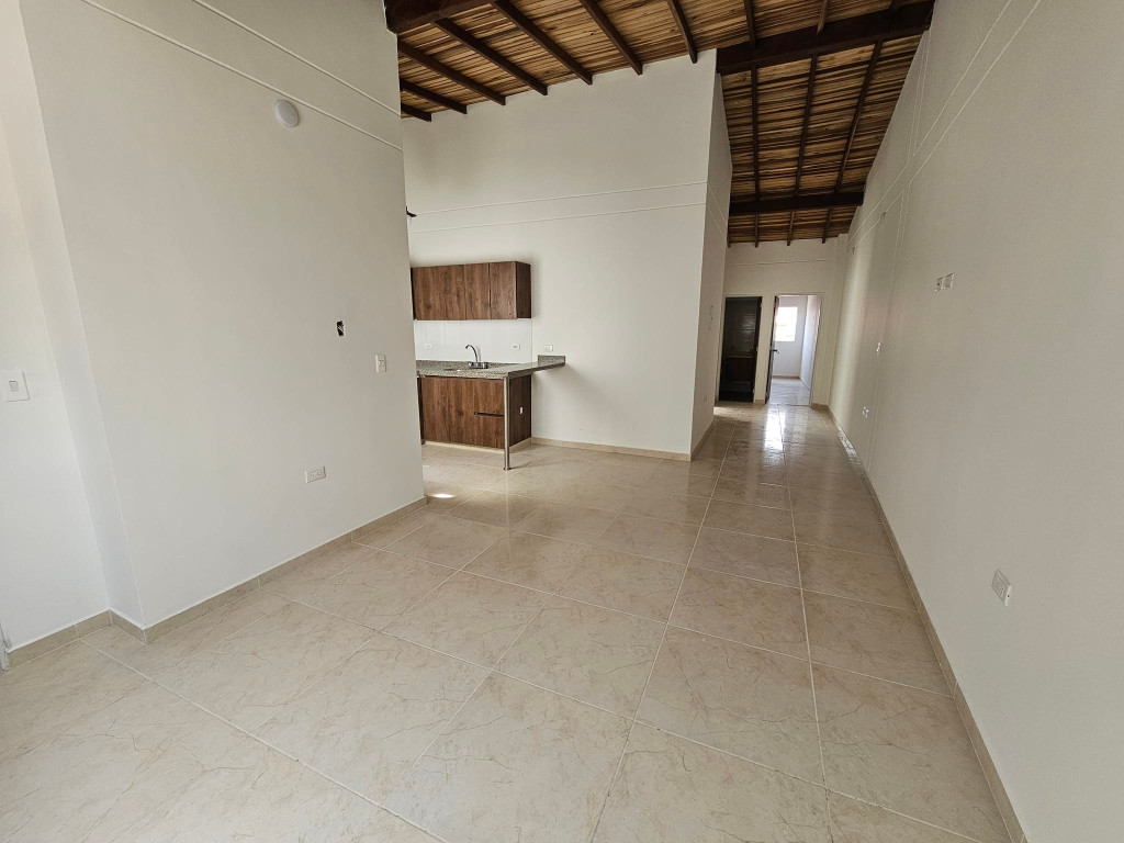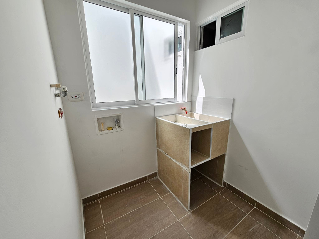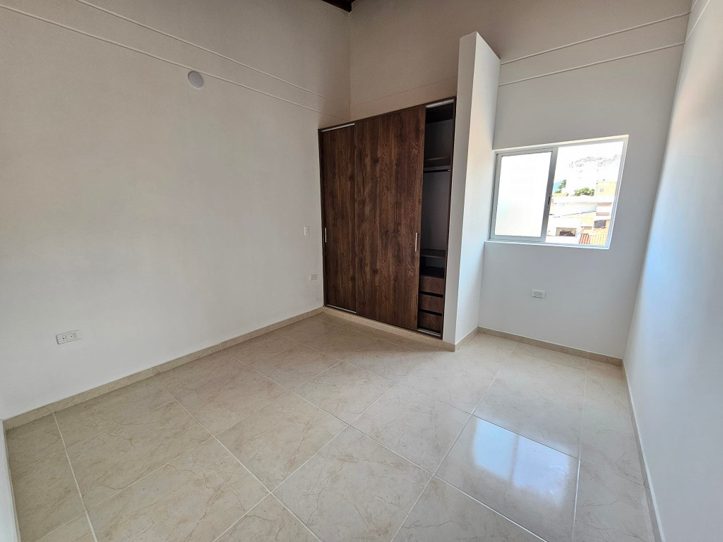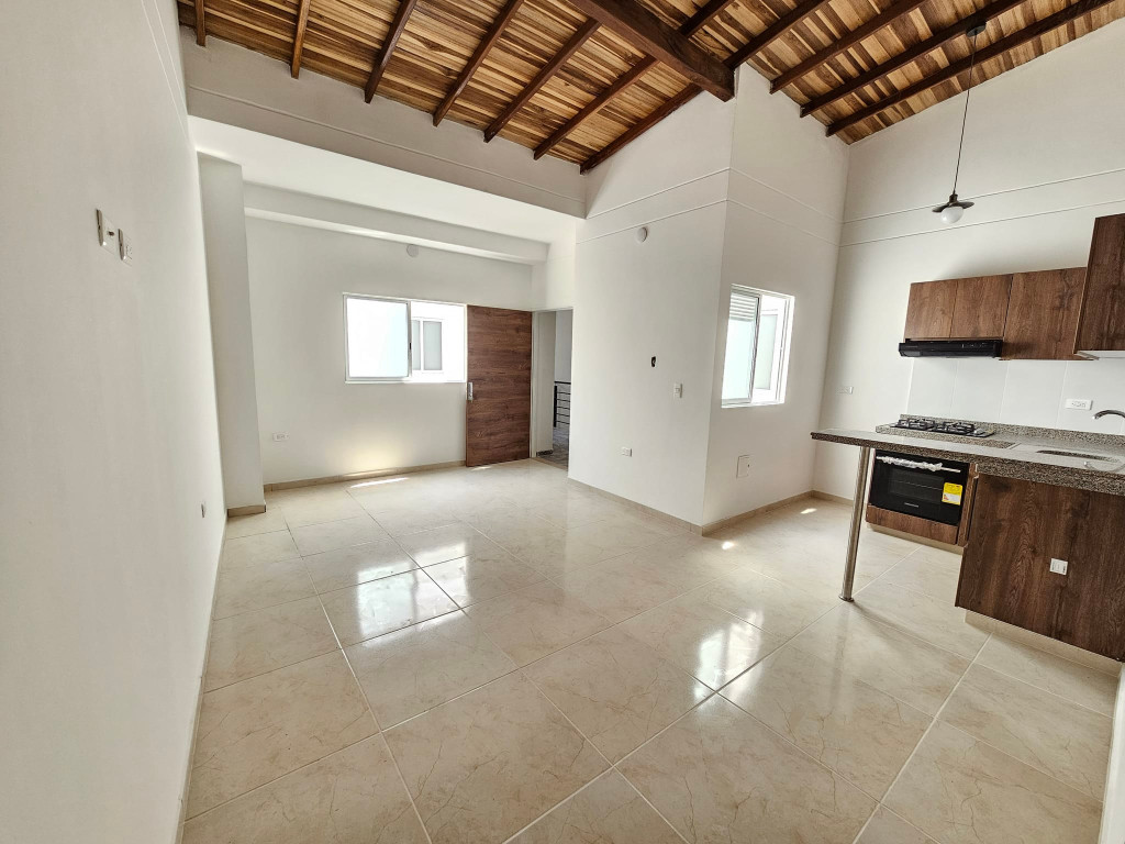 2 habitaciones con clóset e iluminación externa, cocina integral con horno y estufa en vidrio (challenger) ,barra tipo americana, sala-comedor ,zona de ropas con punto para agua caliente baño con división en vidrio templado y mueble de lavamanos , parqueadero para moto 64 metros cuadrados, video citofono con apertura electrónica portón eléctrico, tanque de agua independiente
